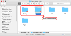 Finder in the OSX system shows such inaccessible folders and files in the following way: