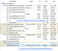 R‑Studio shows Fusion Drive with manually added components in blue:
