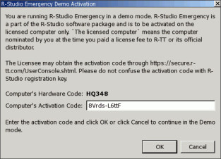 Klicken Sie anschließend auf die Schaltfläche R-Studio Emergency Activation Code (Aktivierungscode für R-Studio Emergency).