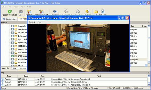 3. Una vez finalizada la exploración, en la parte izquierda aparecerán las particiones reconocidas. (En nuestra prueba, la exploración de la unidad de disco duro de 40 GB duró 43 minutos.) Seleccione la partición que desea recuperar (en nuestro caso, Recognized3). R-Studio comenzará a enumerar los archivos.